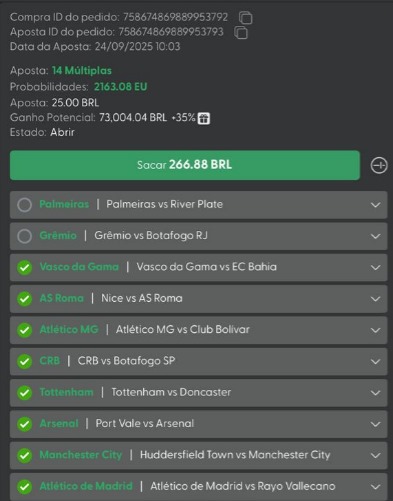 • Alto Volume de Aposta: Conquistei lucros significativos em entradas de alto valor (ex: R$50.000), validando a precisão da minha análise